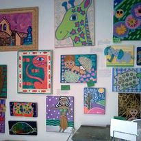 With a small studio space, I took up every inch of the wall space with my paintings!